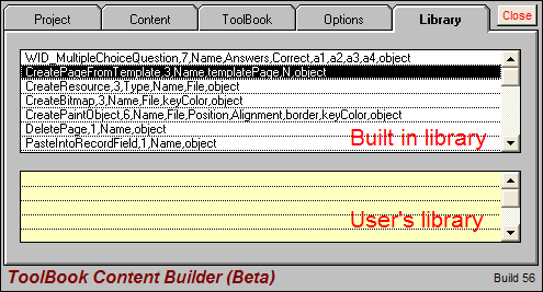 If Content Builder has become popular among toolbook developers I will have add a special library manager. One of the main features of it will be protection of user's libraries that I hope will make them a separately distributed addons for specific tasks.
